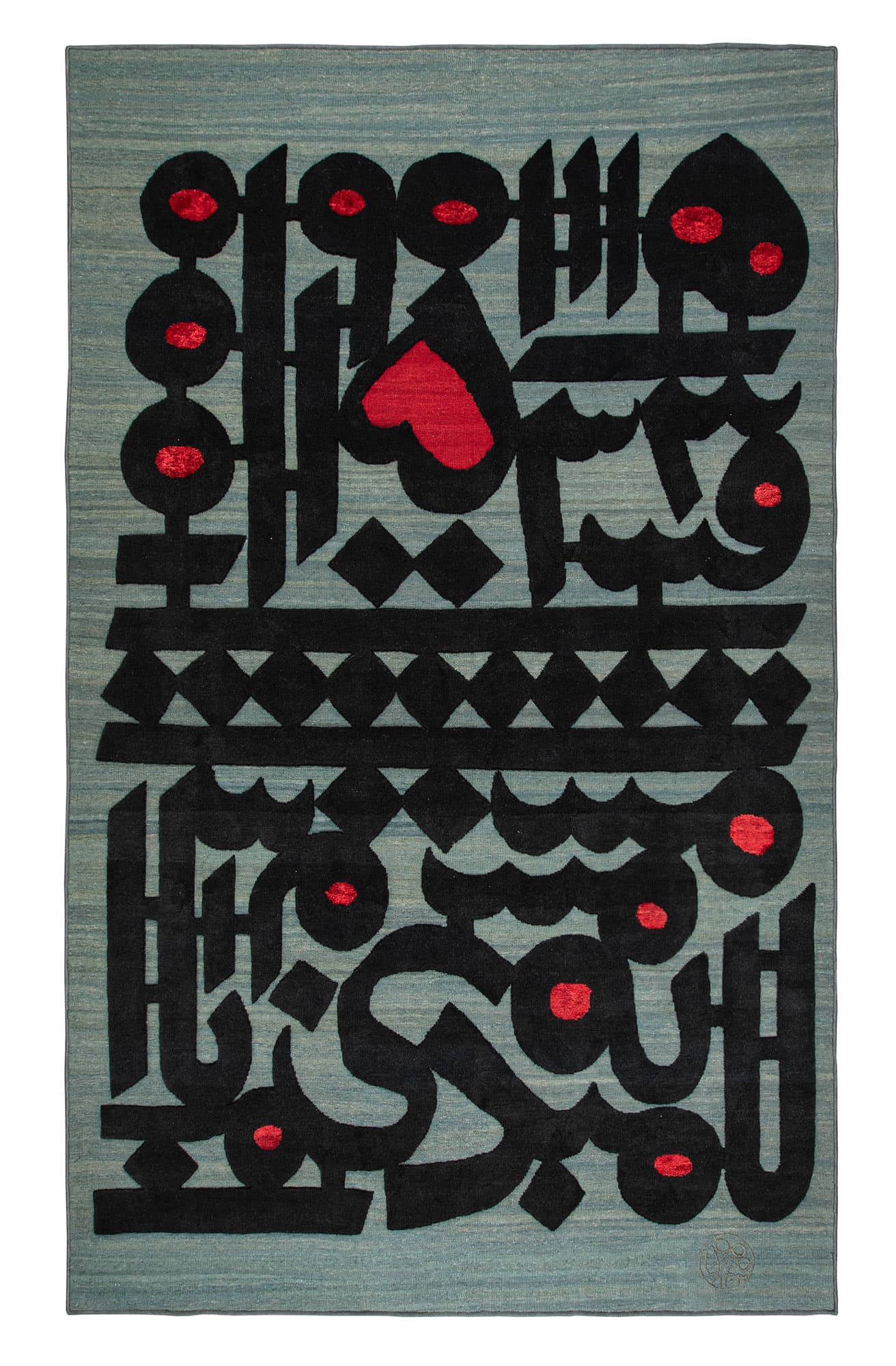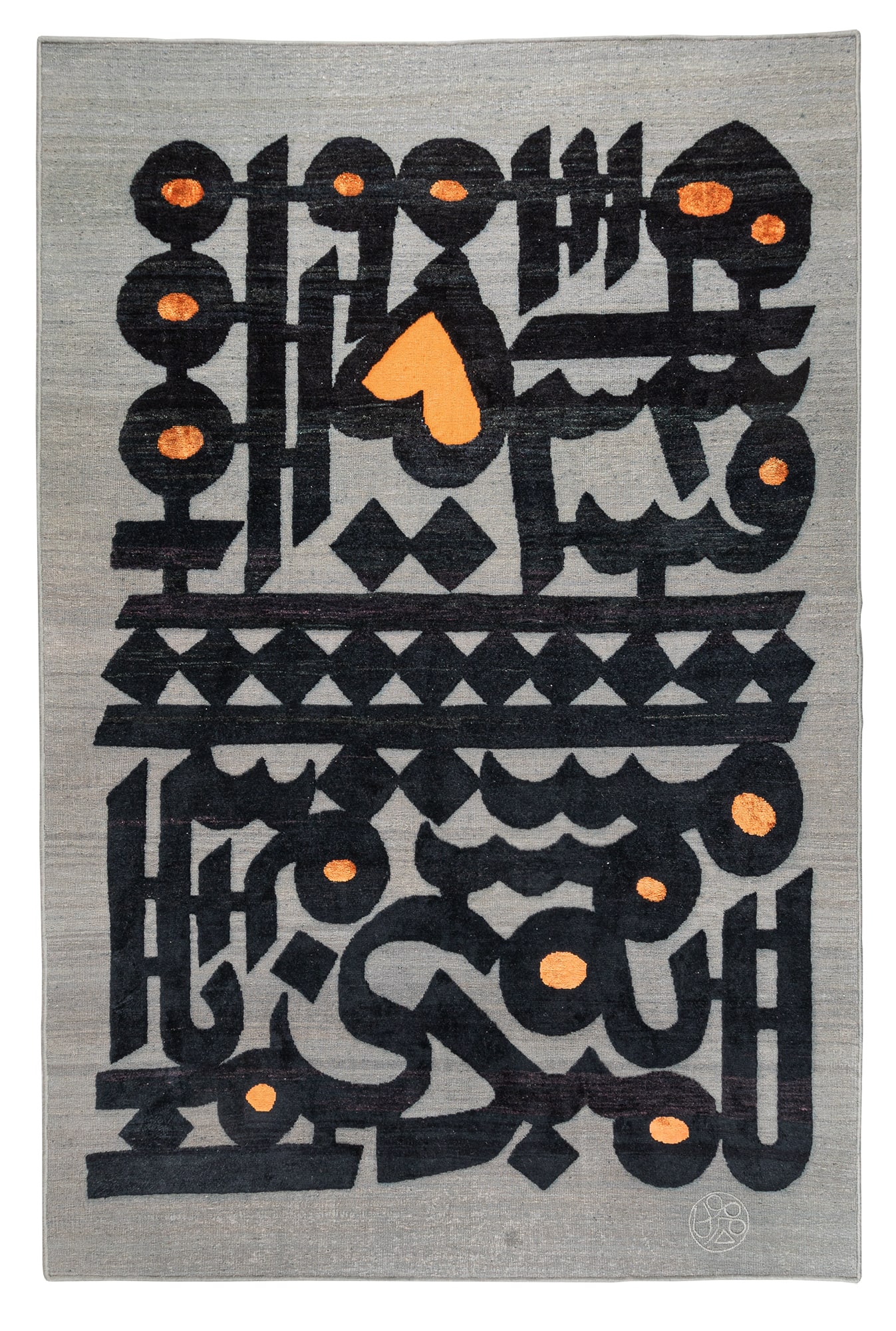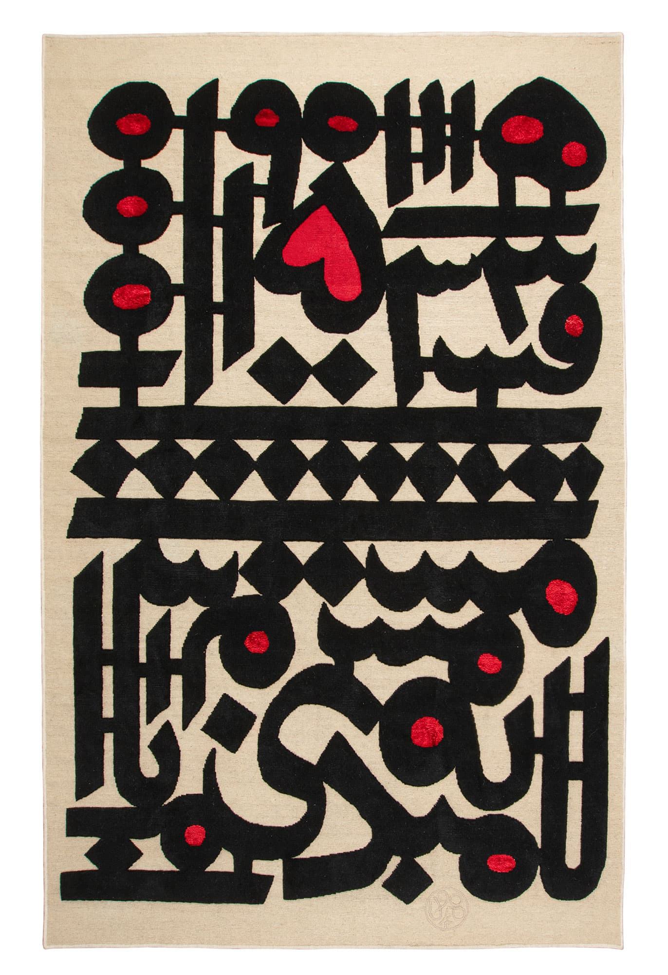 They call it Homa, a name that whispers of freedom and grace. Its surface tells a story—a grey canvas, quiet as dawn, cradling bold black calligraphy that moves like the echo of ancient voices. Scattered bursts of red shimmer like sparks from a fire, each one a pulse of life, a memory held.